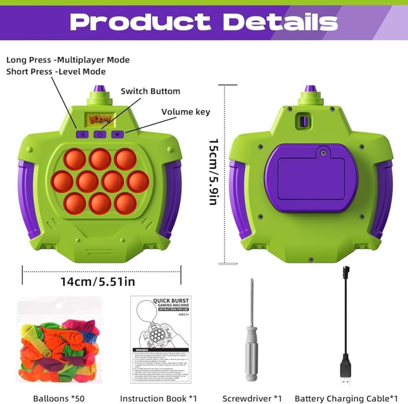 Upgraded Fast Push Pop Game Fidget Toys with Balloon for Kids