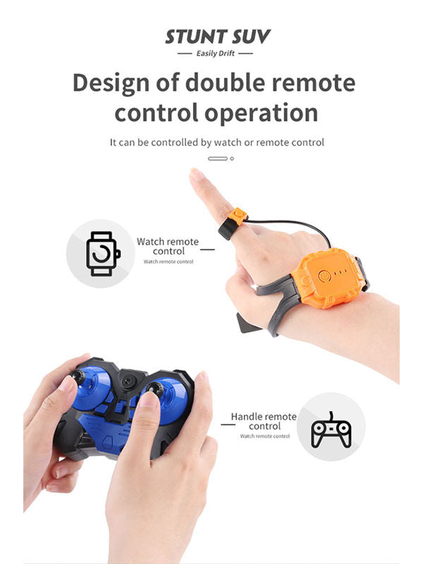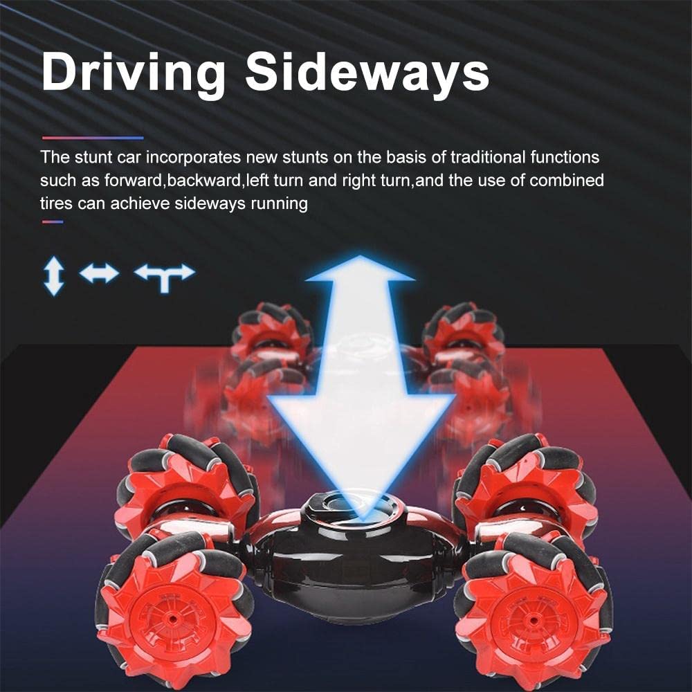 - 🚖【Unique Design Stunt Car】Features of climbing, twisting, moving forward & backward, automatic demonstration 360 degrees rotation, four driving force, watch & gesture sensing remote control,drift. Cool climbing car toys.